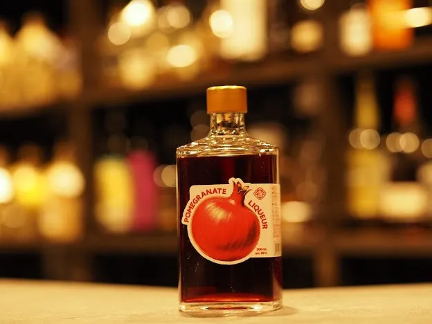 「pomegranate(ポメグラネイト)」は「ザクロ」の英語名で、ザクロを使ったリキュールは、その甘酸っぱい風味と美しい赤い色味が特徴で、カクテルなどに広く使われています。